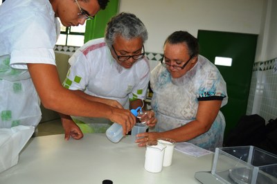 Entre as atividades da disciplina, os estudantes fizeram cálculos de concentração da massa necessária para a medição na balança, preparação de solução e diluição. “Achei interessante. Deveria ter mais aulas desse tipo para nosso aprendizado para termos um melhor conhecimento das aulas práticas”, diz a aluna Glícia Luiza.