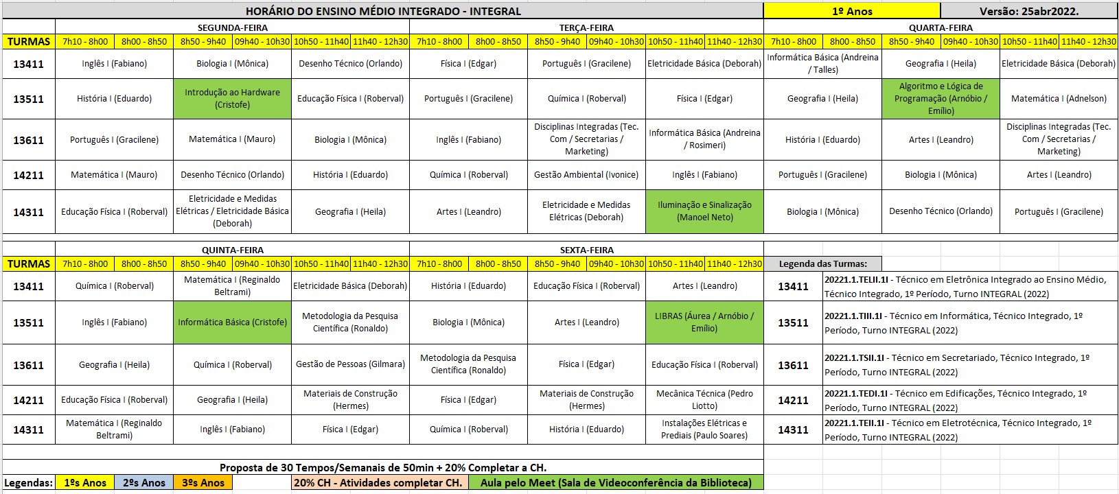 • Horário Escolar - Ensino Médio/Técnico /